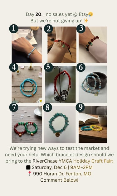 Day 20 on Etsy and no sales yet! Follow my journey as I prepare for my first in-person craft fair at the YMCA. From table design to market research, see how I’m getting ready to test the market and showcase my handmade bracelets