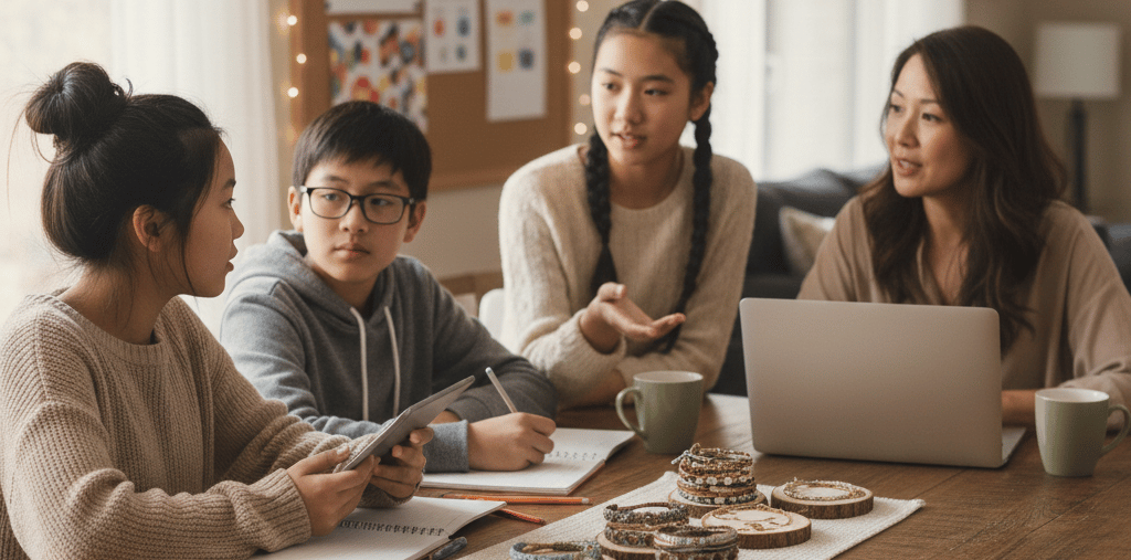 Alongside preparing for the market, I also organized the first meeting for my teen content creator team. I’ve recruited my son, my daughter, and my friend’s daughter to help with content creation. During the meeting, I explained their roles, our mission, and the next steps for promoting our brand.